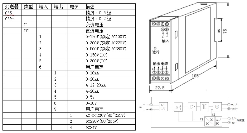 CAS-U141交流電壓變送器是將被測交流電壓信號轉(zhuǎn)換成按線性比例輸出直流電流并隔離的設(shè)備,配以相應(yīng)的指示儀表或裝置是電力系統(tǒng)、遠(yuǎn)動裝置、自動化控制系統(tǒng)等可選的模擬量采集模塊。執(zhí)行標(biāo)準(zhǔn)GB/T13850.1-92