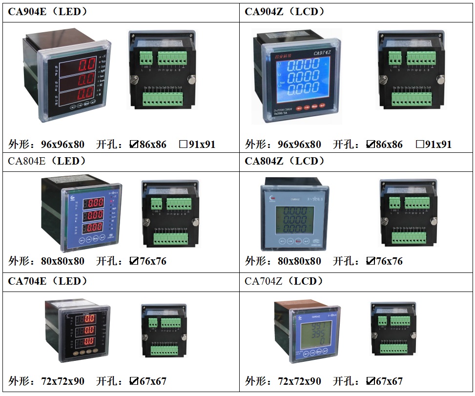 CA900E系列產品是一種具有可編程測量、顯示、數字通訊和電能脈沖變送輸出等功能的多功能智能電表,能夠完成電量測量、電能計量、數據顯示、采集及傳輸,可廣泛應用變電站自動化、配電自動化、智能建筑、企業(yè)內部電能測量、管理、考核。測量精度為0.5級,實現LED現場顯示和遠程RS-485數字接口通訊、采用MODBUS通訊協議。