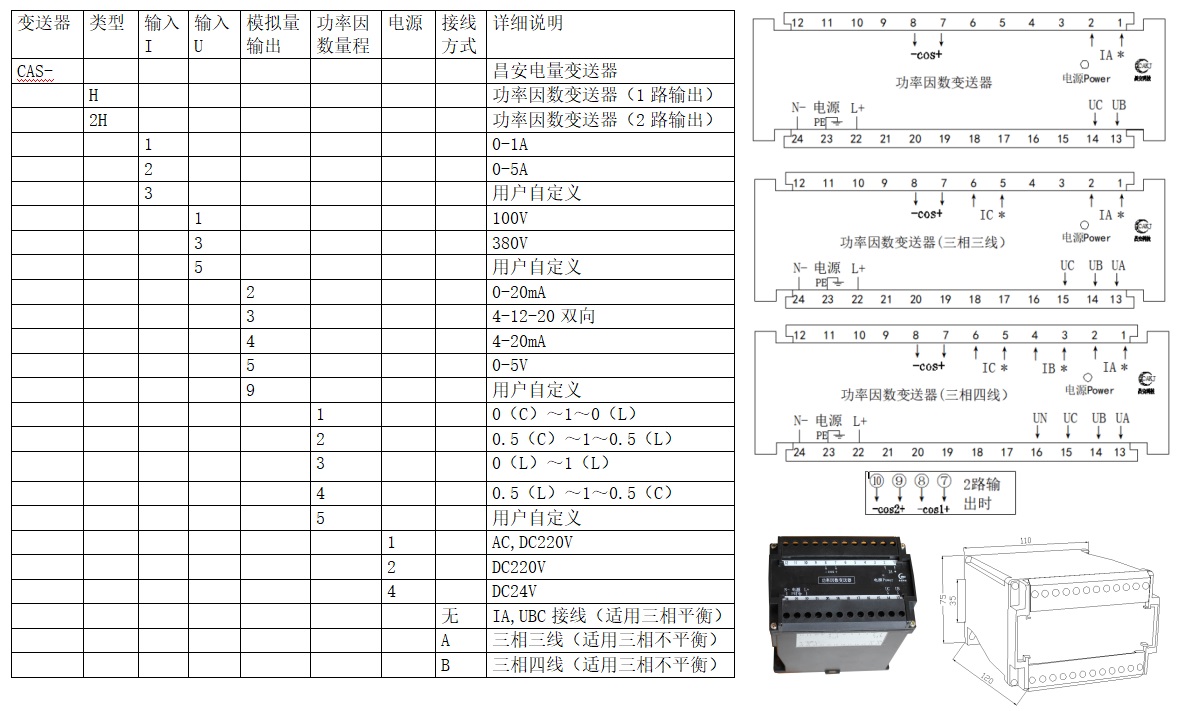 CAS系列功率變送器是將被測電流、電壓信號,通過內(nèi)部CPU計(jì)算出有功功率、無功功率、功率因數(shù)等參量并輸出4-20mA等模擬量的設(shè)備。