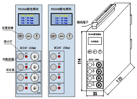 PD104系列直流配電控保模塊是DC24V直流配電系統(tǒng)控制保護模塊,以下簡稱模塊,該模塊具備1路輸