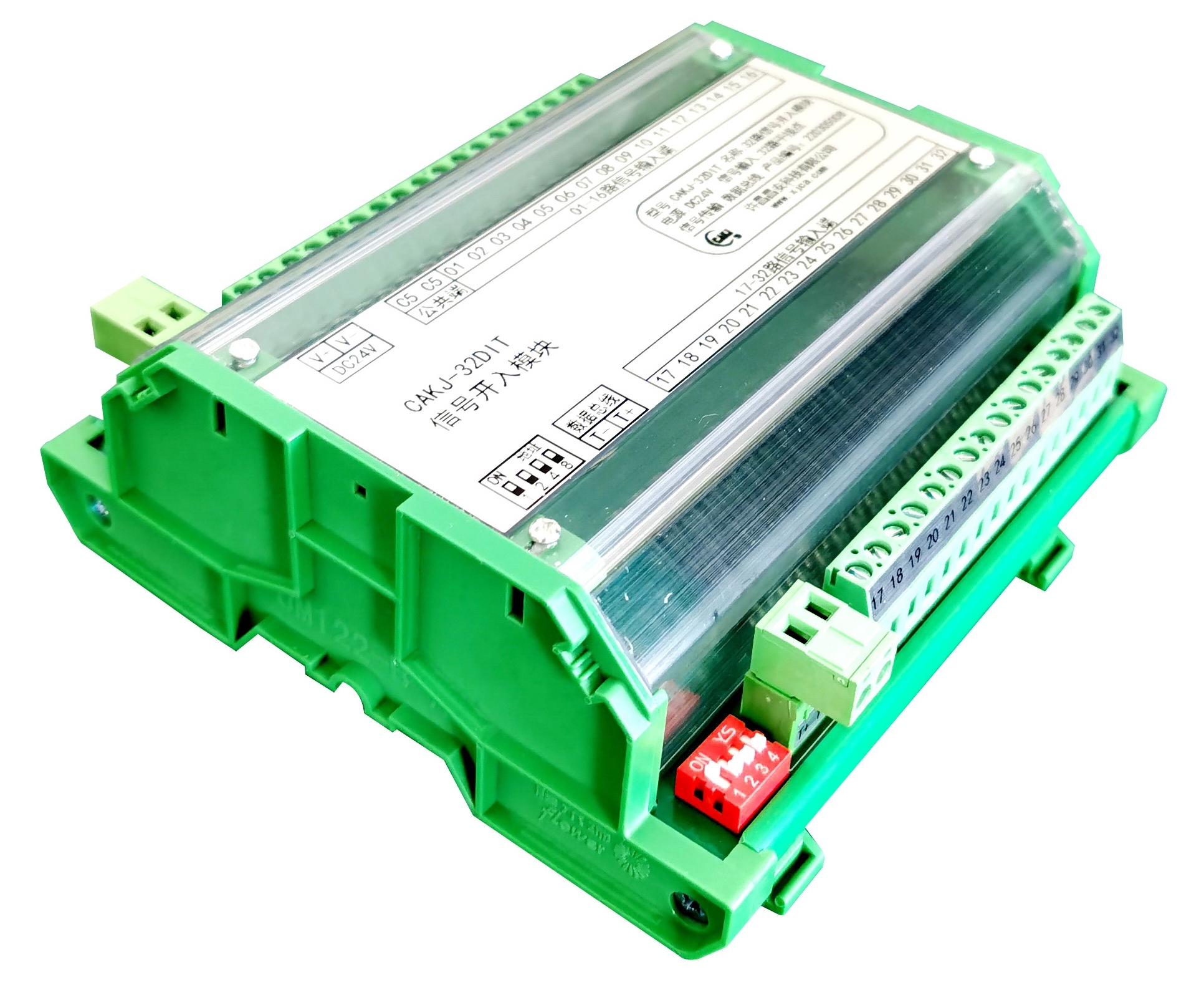 CAKJ-32DIT干接點信號采集模塊,接點信號開入,485通訊輸出。接點接通指示燈亮。