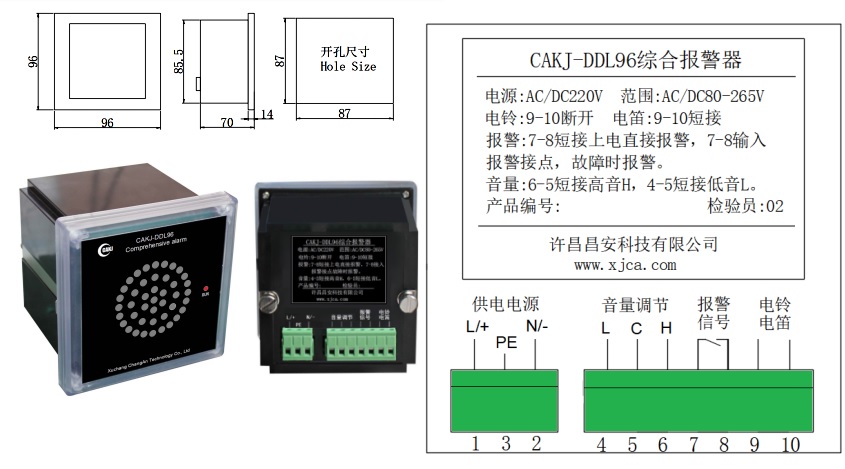 CAKJ-DDL96綜合報(bào)警器,是為電力系統(tǒng)中央信號(hào)報(bào)警而設(shè)計(jì)的一款低功耗、無干擾、大音量電子式報(bào)警設(shè)備。采用單片機(jī)模擬電磁式電鈴電笛聲音頻譜,其發(fā)聲與電磁式電鈴電笛發(fā)聲相似度達(dá)98%。