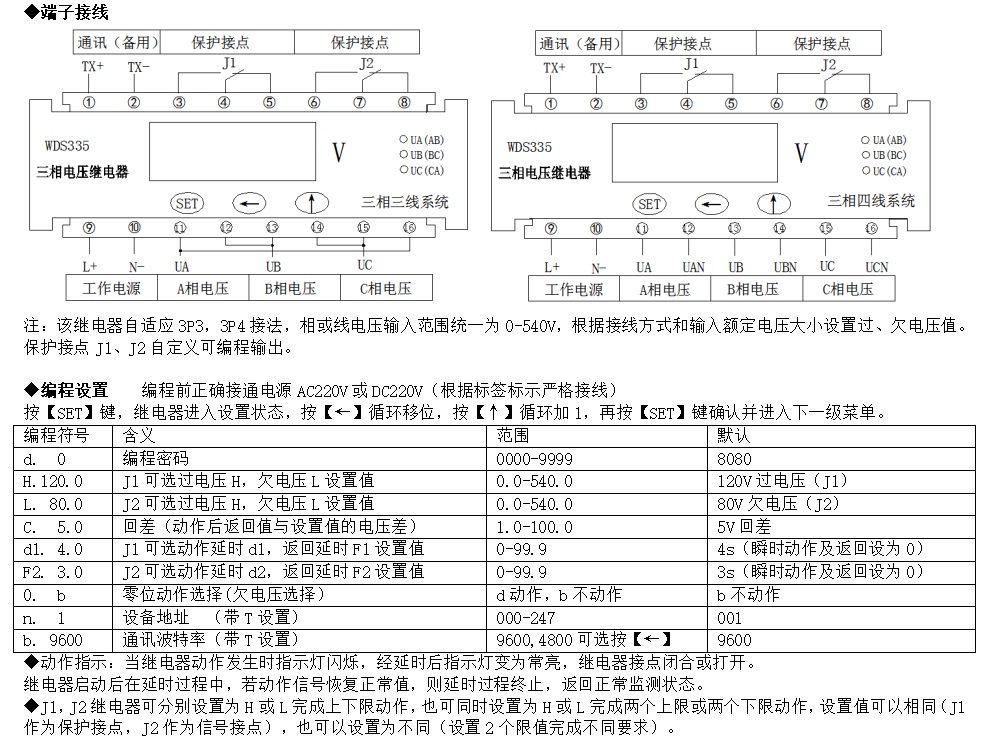 參數(shù):三相過電壓、欠電壓、缺相保護(hù)(綜合)