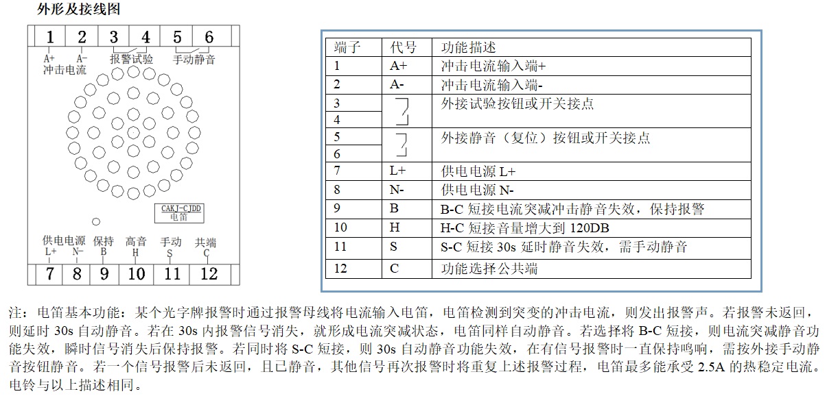電流沖擊式電笛、電鈴,采集光字牌公共母線(公共端)或事故母線SYM、預(yù)告母線YBM的沖擊電流信號(hào),驅(qū)動(dòng)電笛、電鈴發(fā)聲。沖擊電流5mA-100mA,熱穩(wěn)定電流2.5A,以10mA電流為例,可同時(shí)在線250個(gè)報(bào)警光字牌。具備沖擊報(bào)警、沖擊靜音、30s延時(shí)自動(dòng)靜音、手動(dòng)靜音等功能,為組合光字牌的聲光報(bào)警提供了可選擇的聲音報(bào)警設(shè)備。