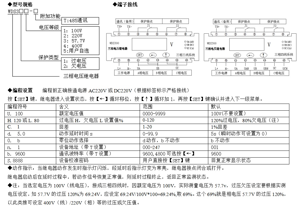 WDS300三相電壓繼電器,適用于高壓35kv,10kv或低壓400v線路及用電設(shè)備,作為三相電壓檢測及控制設(shè)備。且具備延時(shí)動(dòng)作功能,檢測精度高,是高低壓系統(tǒng)簡便可靠的三相過電壓繼電保護(hù)。