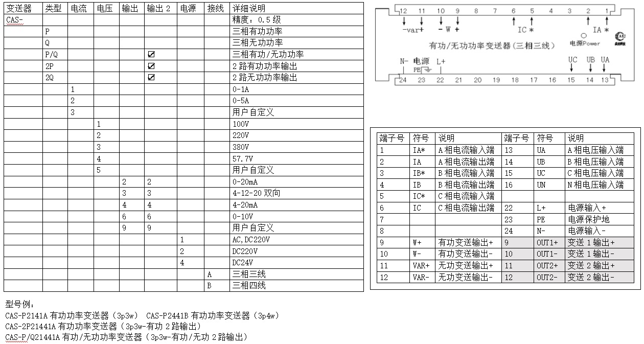 CAS系列功率變送器是將被測(cè)電流、電壓信號(hào),通過(guò)內(nèi)部CPU計(jì)算出有功功率、無(wú)功功率、功率因數(shù)等參量并輸出4-20mA等模擬量的設(shè)備。